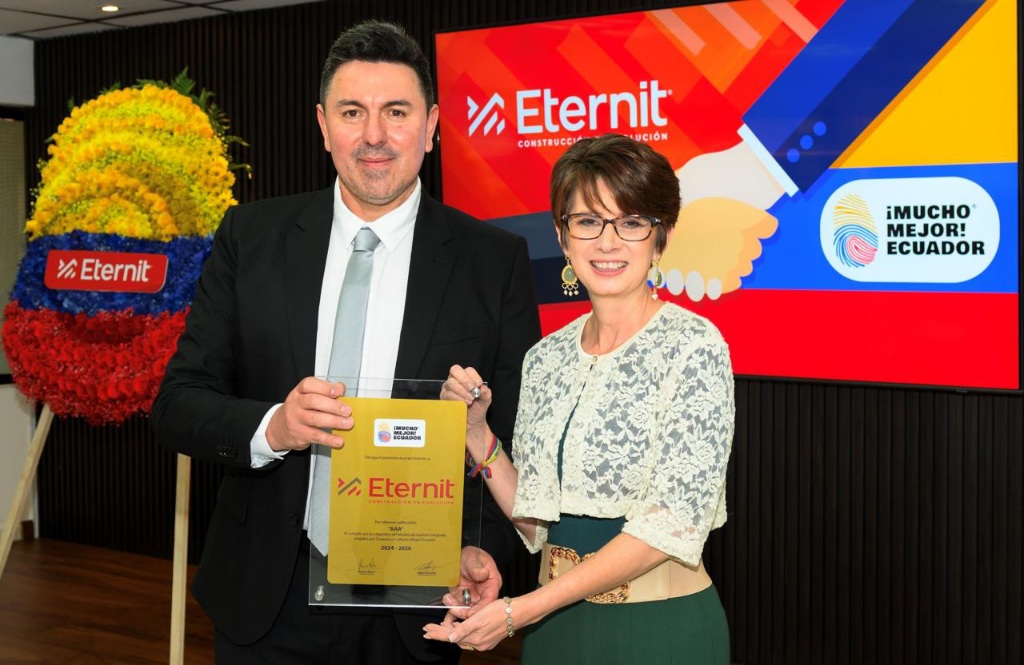 La empresa recibió la huella Mucho mejor Ecuador, en la categoría AAA, gracias a sus estándares de aseguramiento de la calidad, sistemas de gestión y normatividad. Con este sello, Eternit busca que los consumidores reconozcan a sus productos como ecuatorianos y de alta calidad, y que los prefieran frente a la competencia desleal de productos importados.La proliferación en el mercado ecuatoriano de productos importados sin garantía ni estándares de calidad constituye una competencia desleal contra la industria nacional, afectando el encadenamiento productivo, las plazas de trabajo y el aporte a la economía local.Para contrarrestar este impacto negativo y promover una identidad asociada con el país, la empresa Eternit decidió evaluarse bajo los lineamientos del Sistema de Gestión Integrado de Alto Nivel de la Corporación Mucho mejor Ecuador. El modelo contempla siete ejes: Compromiso de la Alta Dirección, Contexto de la Organización, Liderazgo y Planificación, Soporte y Recursos, Operación, Evaluación del Desempeño y Mejora Continua.Luego de la evaluación, Eternit logró la categoría AAA de Mucho mejor Ecuador, la más alta distinción del sello, gracias a sus estándares de aseguramiento de la calidad, sistemas de gestión y normatividad.“Somos una industria ecuatoriana, con mano de obra local y que más del 90 % de las materias primas que usamos son de proveedores locales. Con esta certificación, buscamos que el consumidor reconozca que nuestros productos son ecuatorianos y son de alta calidad, para que los prefieran al momento de comprar frente a un producto importado”, manifestó Jhon Jairo Tabares, gerente general de Eternit.La directora ejecutiva de la Corporación Mucho mejor Ecuador, Mónica Malo, realizó la entrega formal del sello a la compañía y destacó que solo el 12 % de las 690 marcas que tienen el distintivo han alcanzado la categoría AAA. “En 2024, Eternit decidió evaluarse bajo los lineamientos de nuestro modelo Gestión Integrado de Alto Nivel, un proceso que fue bastante fácil debido a su organización. Esto demuestra que es una empresa de alta calidad y que está comprometida con el consumidor, con el empleo, con la mejora continua y que camina hacia la excelencia”, destacó Malo.Desde ahora, el material informativo y promocional de la compañía contará con la huella Mucho mejor Ecuador, así como las etiquetas de sus productos en sus diversas líneas de negocios: cubiertas de fibrocemento, tejas de polipropileno, sistemas constructivo liviano, y pinturas y morteros.“Eternit tiene certificaciones, garantía, respaldo y 68 años de trayectoria, características que se complementarán con esta identidad asociada al país que estamos generando para que los ecuatorianos contribuyan con la industria nacional”, agregó Tabares.