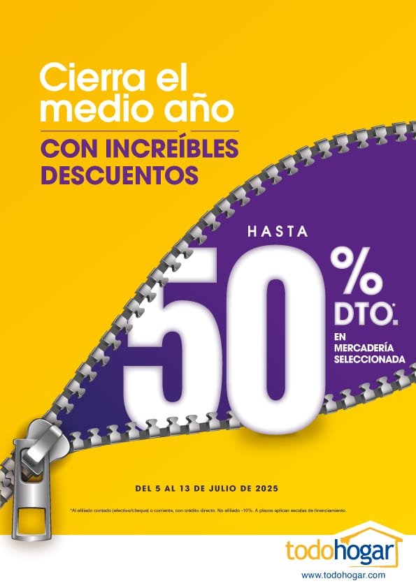 Esta es una oportunidad única para embellecer tu hogar con productos de calidad a precios increíbles. Desde el 5 al 13 de julio, podrás encontrar en nuestras tiendas una amplia variedad de artículos: decoración, electrodomésticos, audio y video y mucho más, con descuentos hasta el 50% en mercadería seleccionada. Queremos que cada rincón de tu hogar refleje tu estilo y personalidad, y qué mejor manera de hacerlo que aprovechando estas ofertas exclusivas. No dejes pasar esta oportunidad. Te esperamos en cualquiera de nuestras tiendas para que disfrutes de los descuentos únicos y cierres este medio año con esta gran campaña. Los locales de Todohogar que se encuentran en las ciudades de Quito, Guayaquil, Cuenca, Ambato, Riobamba, Ibarra, Loja, Manta, Portoviejo, Machala, Esmeraldas. Todohogar tiene todo para tu hogar.